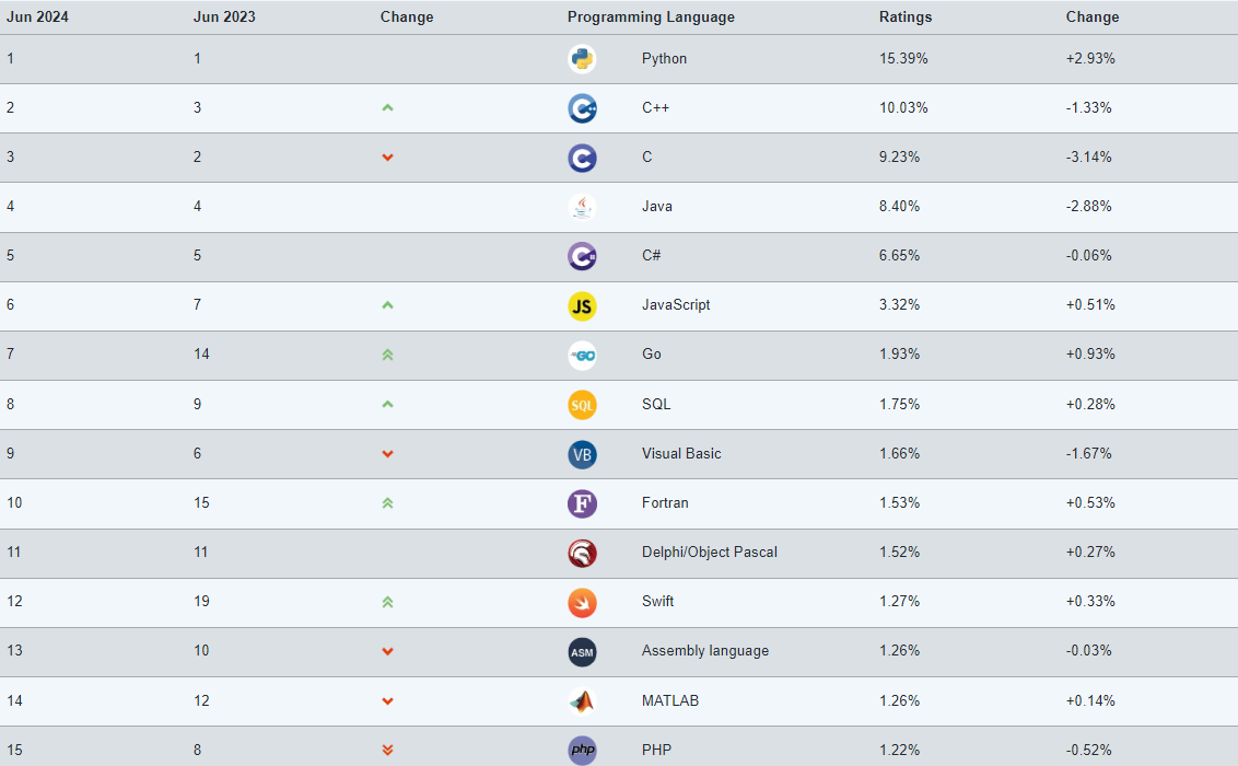 TIOBE Index 기준 근 5년간 프로그래밍 언어 순위 1순위이다.