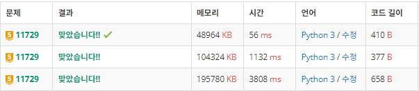 앞선 두번의 풀이를 하고나면 좋은 방법이 떠올라서 한번씩 더 풀었습니다.