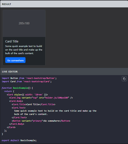 리액트 - 부트스트랩 공식문서 페이지에서는 코드를 공식문서 페이지 내부에서 수정해보면서 자신에게 맞는 스타일을 만들어서 코드를 가져올 수 있습니다.