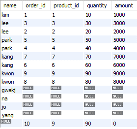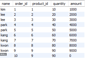 SELECT customers.name, orders.id AS order_id, orders.product_id, orders.quantity, orders.amount