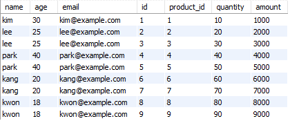 SELECT custonmers.name, customers.agem customers.email, orders.id, orders.product_id, orders.quantity, orders.amount